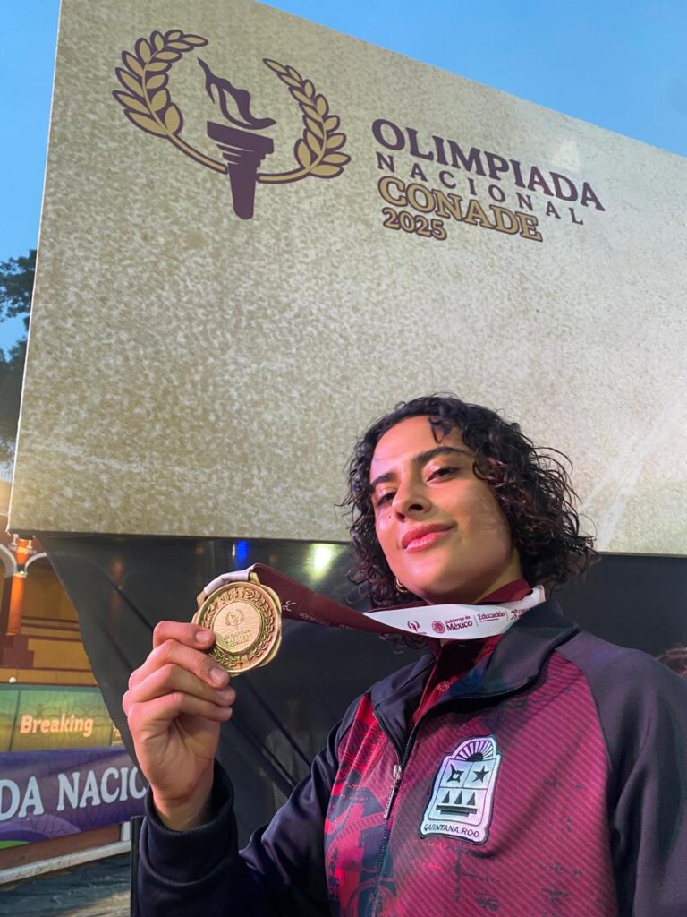 La atleta quintanarroense Swami Oshmara Mostalac Rizzitiello una vez más mostró su calidad y el porque es de las deportistas más destacadas en la disciplina de Breaking, esto luego de colgarse al pecho la medalla de oro en la categoría Juvenil de 16-23 años, al continuar con la disputa de la Olimpiada Nacional CONADE 2025, que se escenificó en la Plaza de Toros “Jorge ‘El Ranchero’ Aguilar” en Tlaxcala.
