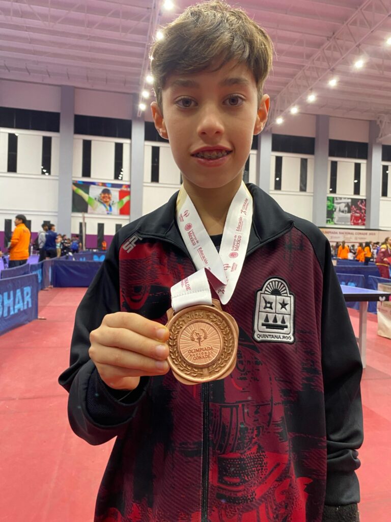 La Selección de Quintana Roo de Tenis de Mesa sigue sumando medallas en la Olimpiada Nacional CONADE 2025, las y los atletas Sofía Alessandra Monje Peña, Ana Sofía Arellano Reséndiz y David Cardona Medida, lograron una presea de bronce, cada uno de ellos, durante las pruebas individuales, que se disputó en la Ciudad Deportiva de Alto Rendimiento de Apizaco, Tlaxcala.