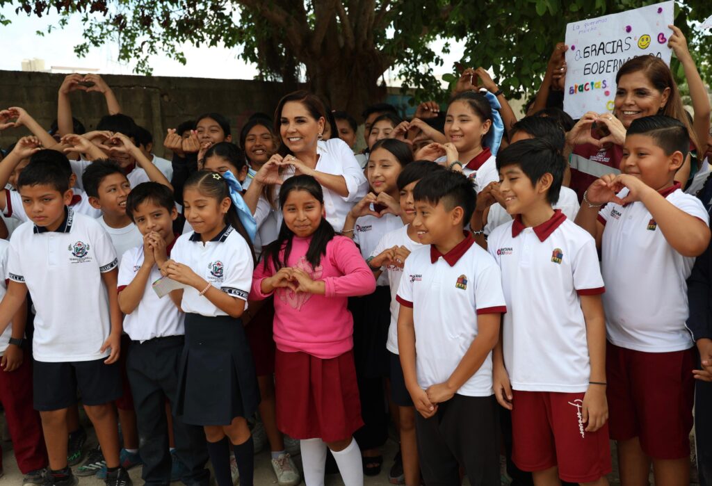 Durante una visita a la escuela primaria “Enrique Estrella Oxté”, de esta comunidad de la zona continental de Isla Mujeres, las y los estudiantes solicitaron a la gobernadora Mara Lezama Espinosa la construcción de un domo que los proteja de las inclemencias del clima.