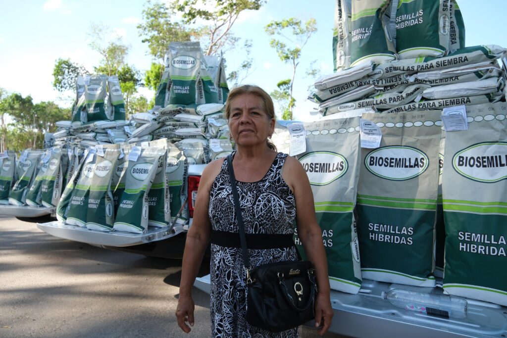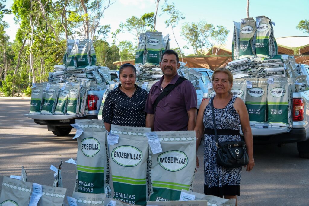 La gobernadora Mara Lezama Espinosa entregó 70 toneladas de semilla mejorada de maíz para la siembra en 149 comunidades y en apoyo de casi mil 700 familias de Othón P. Blanco, Bacalar, Felipe Carrillo Puerto, José María Morelos, Lázaro Cárdenas y Puerto Morelos, que representa un paso firme hacia la seguridad alimentaria y el fortalecimiento del campo.