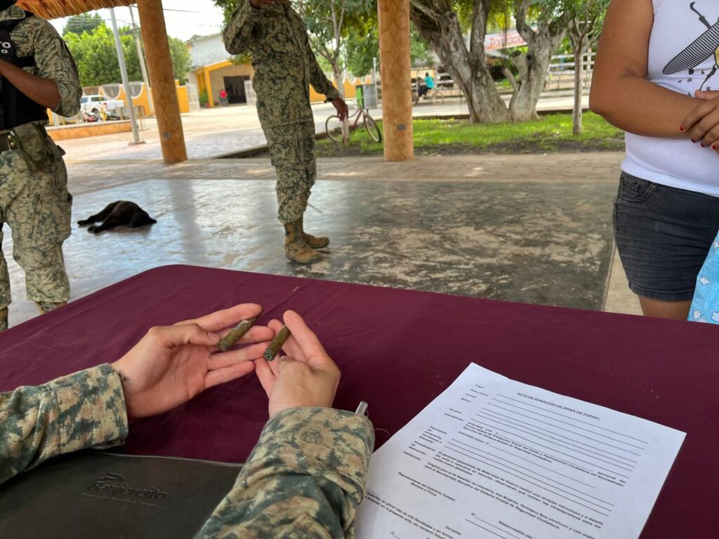“Estas actividades tienen como enfoque principal buscar poner fuera de circulación las armas de fuego, municiones y explosivos que se encuentren en los hogares, las cuales son un riesgo para los que los habitan y son intercambiados por un incentivo económico establecido por la Secretaría de Defensa Nacional ya tiene establecido un monto a pagar” dijo.