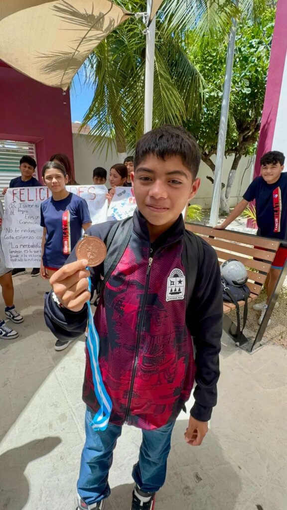 Isaías Leciano Mut, quien estuvo acompañado de sus entrenadores William Portal Marrero y Vianey Quijano Pacheco, es un atleta que pertenece al Centro Estatal Deportivo de Alto Rendimiento (CEDAR) Chetumal y durante su llegada fue recibido en medio de aplausos y porras por sus compañeros, recordando que hace unos días logró un metal de bronce en el Campeonato Panamericano Escolar U-15, que se celebró en Guatemala.