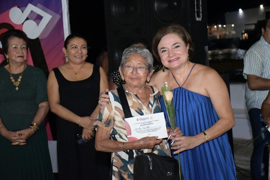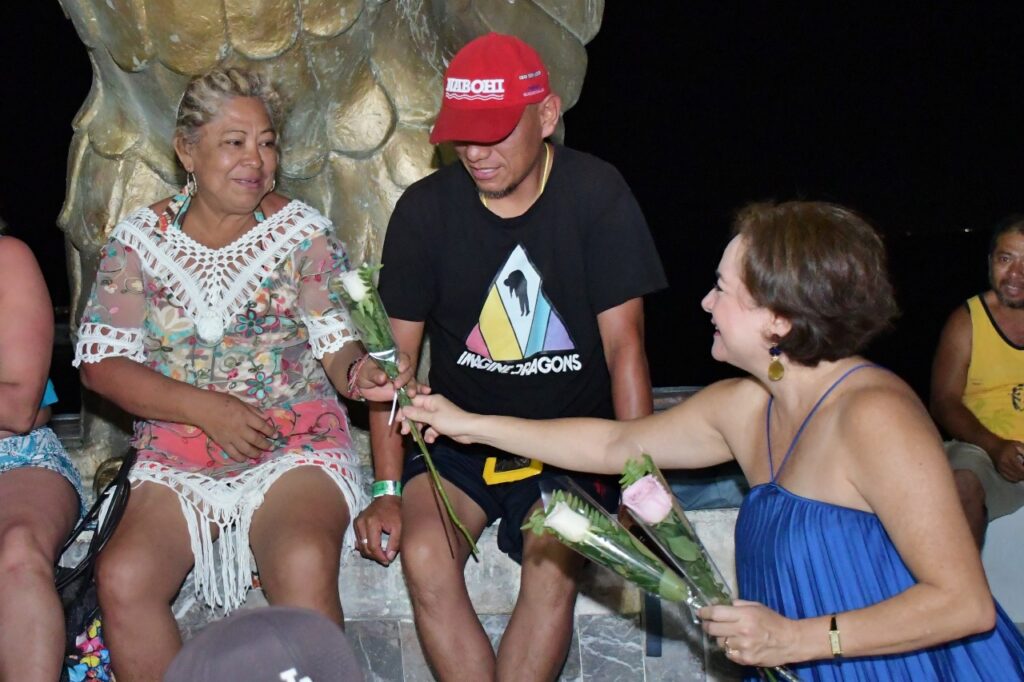 La directora general de la FPMC, Juanita Alonso Marrufo, encabezó esta velada dedicada a las madres cozumeleñas, reconociendo por su papel fundamental en la formación de las familias y el fortalecimiento del tejido social. Como muestra de aprecio, entregó rosas y compartió bocadillos y refrescos con las y los asistentes que se dieron cita en la explanada de la bandera.