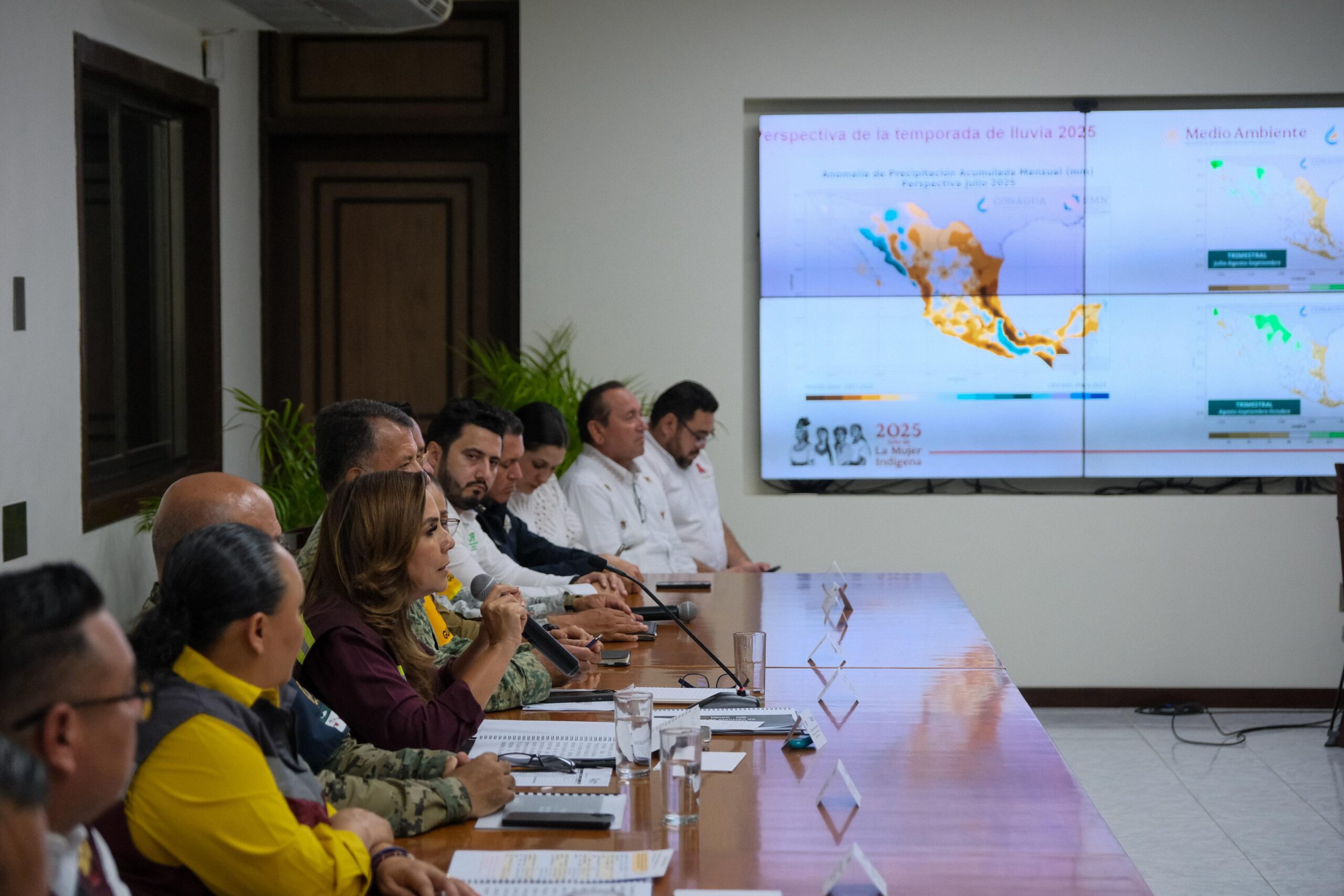 Al iniciar la Temporada de Lluvias y Ciclones Tropicales 2025, la gobernadora Mara Lezama Espinosa instaló oficialmente el Comité Operativo Hidrometeorológico al encabezar la Primera Sesión Ordinaria del Consejo Estatal de Protección Civil, con la presencia de presidentas y presidentes municipales, DEFENSA, MARINA, así como autoridades federales y paraestatales.