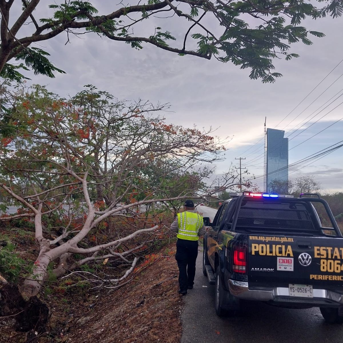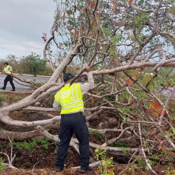 Como parte de las acciones de auxilio a la ciudadanía, elementos de la SSP se encuentran realizando labores para liberar calles y avenidas afectadas por la caída de árboles ocasionada por la lluvia. Estas intervenciones permiten restablecer la circulación vehicular y prevenir accidentes.