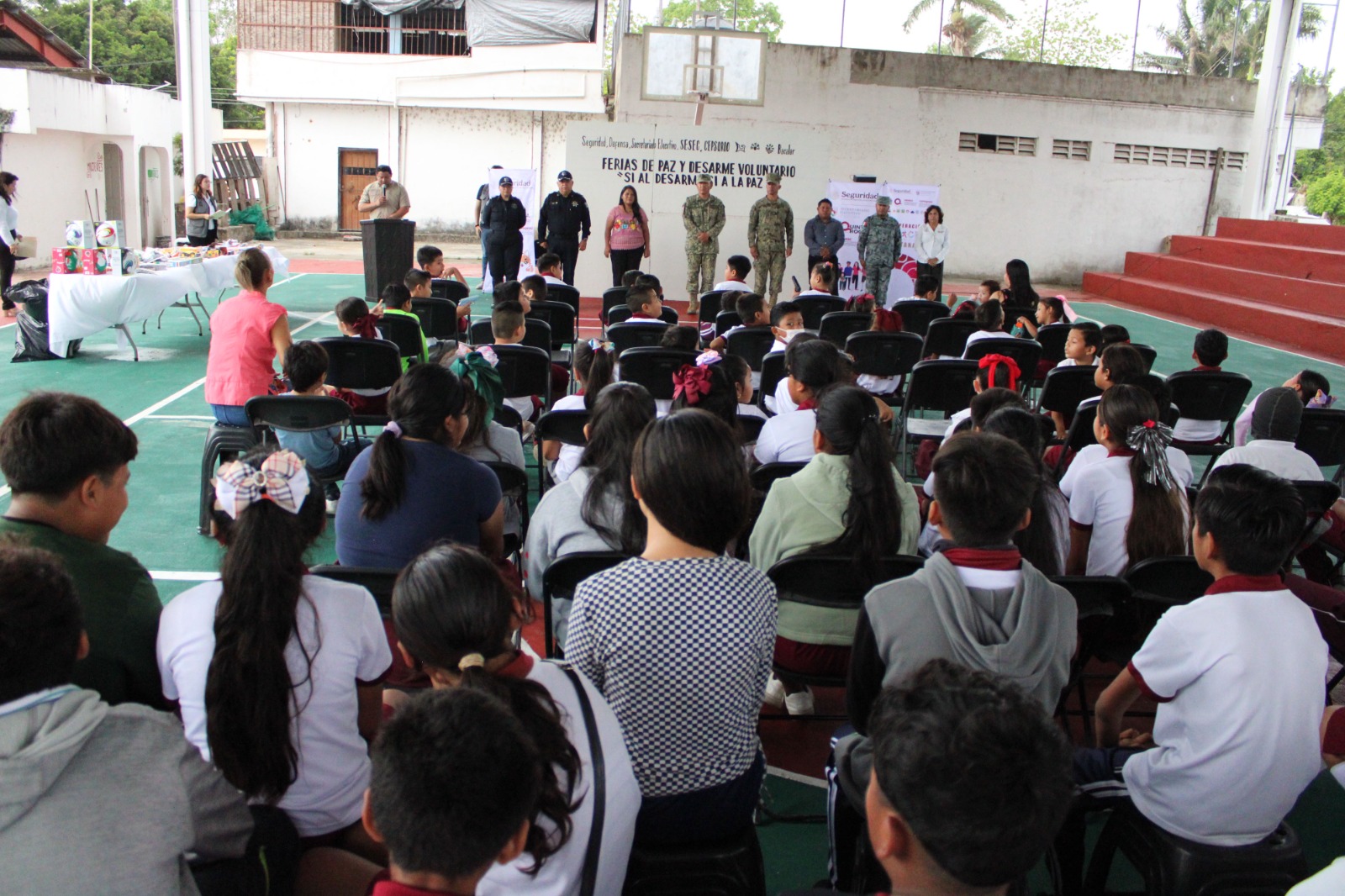 Con la finalidad de fomentar entre la niñez la cultura de paz y sacar de los hogares armamento o municiones que son un riesgo para la familia, esta semana llegaron a localidades del municipio Othón P. Blanco, las Ferias de Paz y Desarme Voluntario “Si al Desarme, Si a la Paz”, que promueve el Secretariado Ejecutivo del Sistema Estatal de Seguridad Ciudadana (SESESC), en coordinación con la Secretaría de la Defensa Nacional.