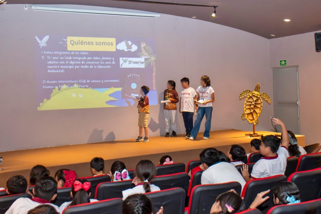 Durante tres días, niñas y niños participarán en conferencias y mesas de trabajo que abordan temas como “Aves de hábitos nocturnos y constelaciones estelares”, “Impacto del plástico y microplástico”, “Nuestras tortugas”, “Áreas naturales protegidas”, “Amenazas a las aves por desechos plásticos”, “Contaminación en playas de la isla” y “Hongos de Cozumel”.