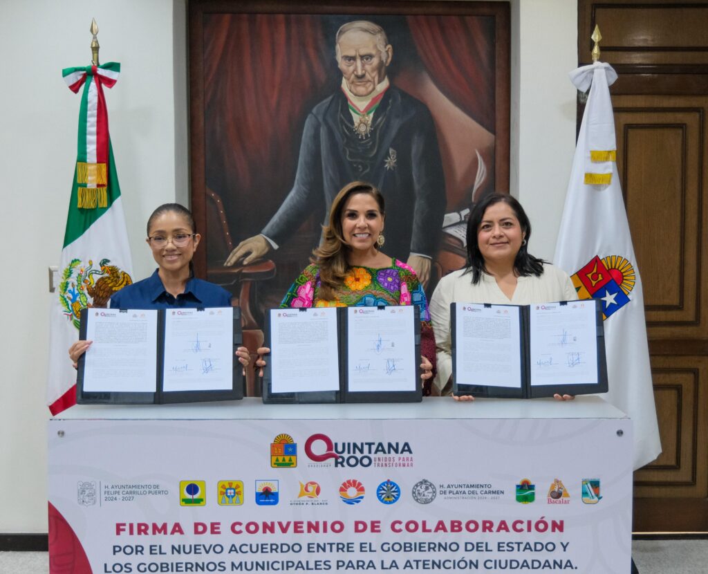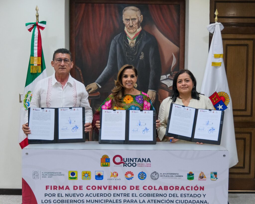El Gobierno del Estado, a través del Despacho de la Coordinación General de Gestión Social, y los 11 municipios de Quintana Roo firmaron el Convenio de Colaboración por el Nuevo Acuerdo entre el Gobierno del Estado y los gobiernos municipales para la Atención Ciudadana, con el objetivo de fortalecer la coordinación interinstitucional y brindar respuestas más eficaces a las necesidades de la población.