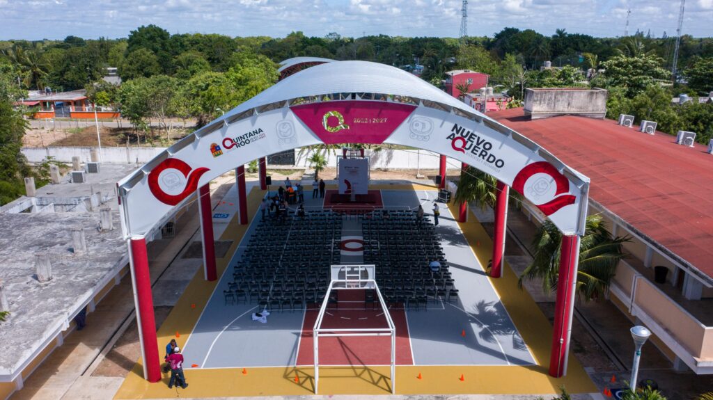 Para avanzar en la gran misión de construir 1,109 domos en las escuelas públicas de todo el estado, la gobernadora Mara Lezama Espinosa inauguró el de la Escuela Secundaria Técnica Núm. 34 «Ernesto Novelo y Novelo» en Bacalar, en beneficio directo de 275 estudiantes del turno matutino, entre ellos 154 mujeres y 121 hombres.