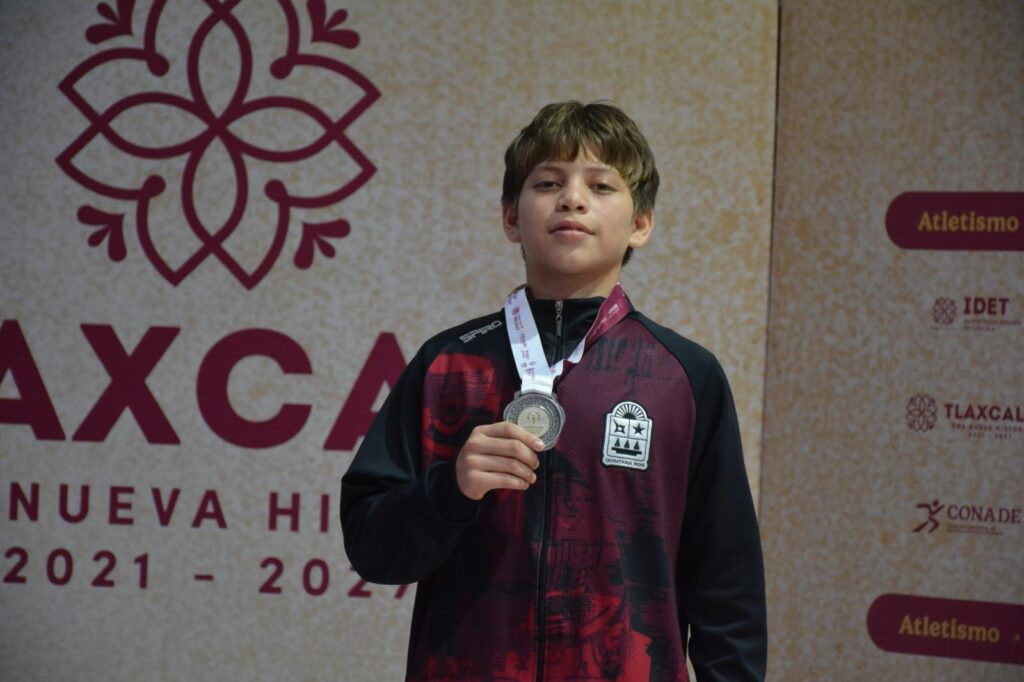 El primero en subir al podio fue Damián Adrián Granados Oliva, quien protagonizó una destacada actuación en la categoría Infantil 52 kilogramos. Con tres victorias consecutivas, llegó a la gran final, donde dejó todo en el tatami para colgarse la medalla de plata.