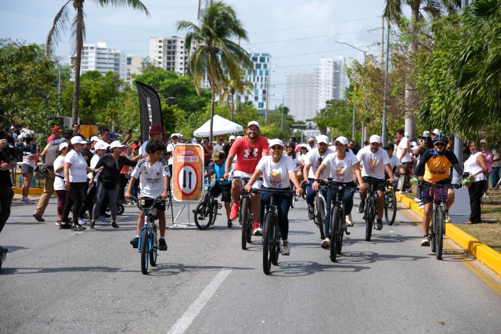 Este evento abarca las avenidas Bonampak, Uxmal y Nader, conectando a la comunidad con diversas actividades a lo largo del recorrido. El DIF Quintana Roo participó con un stand de juegos lúdicos para niñas y niños, fomentando la recreación.