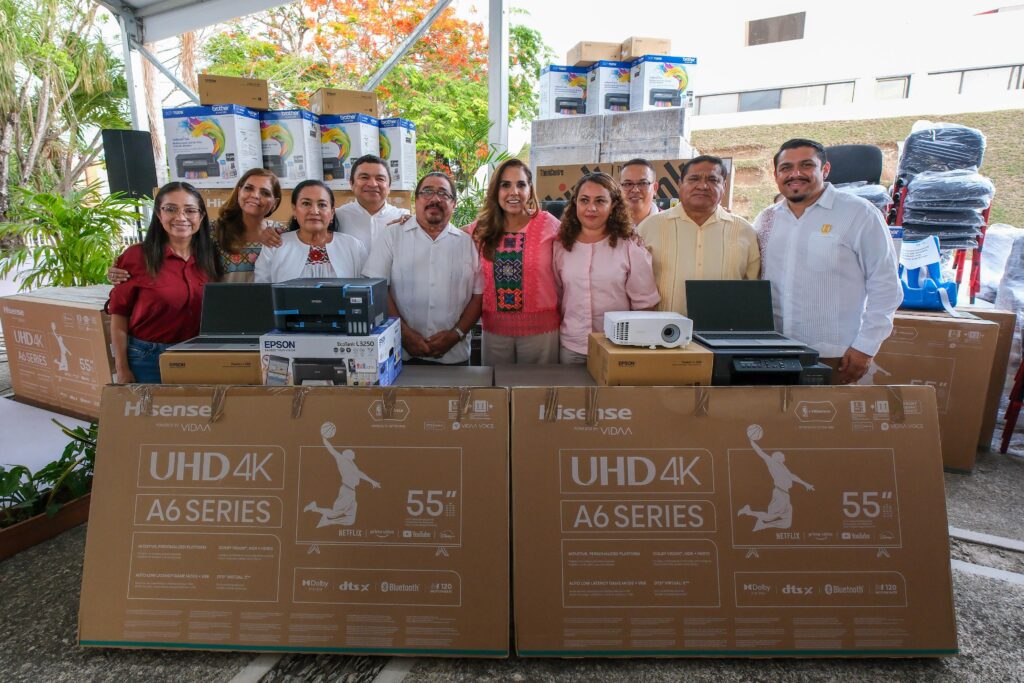 La gobernadora Mara Lezama Espinosa entregó equipamiento especializado a los Centros de Atención Múltiple (CAM) y al Programa de Integración Tecnológica de Nivel Secundarias, con una inversión histórica sin precedentes por más de 81 millones de pesos renovando equipos.