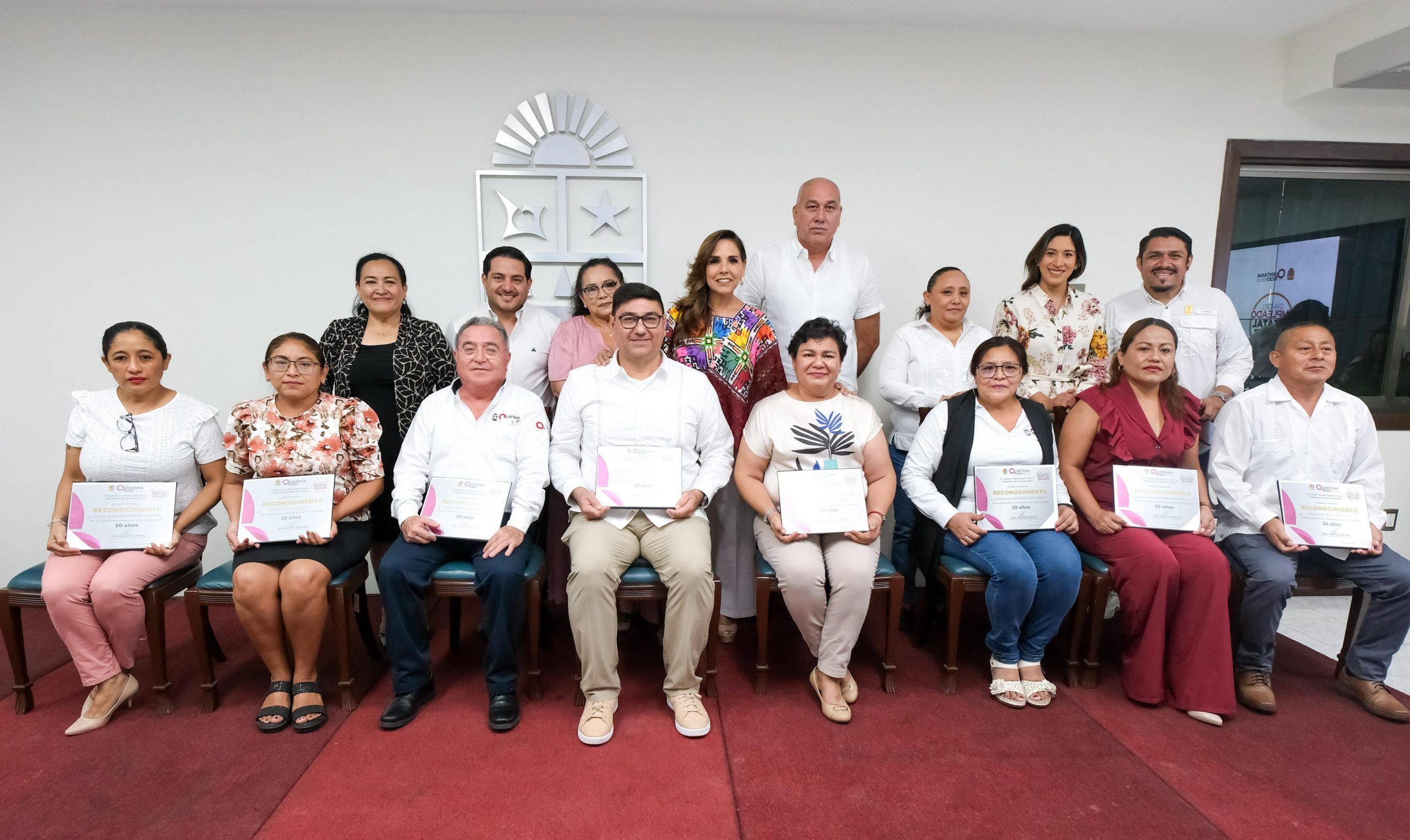 Durante el evento de entrega de estímulos y reconocimientos, la gobernadora de Quintana Roo añadió que hay trabajadores que llevan 20, 25, 30, 35, 40 y hasta 45 años dedicados al servicio público. “Cada año es una historia que vale la pena contar; son años de constancia, de entrega que ha ido creciendo con el tiempo, marcando el ritmo de una carrera que nunca se detuvo. El reconocimiento es también para su familia”, citó.