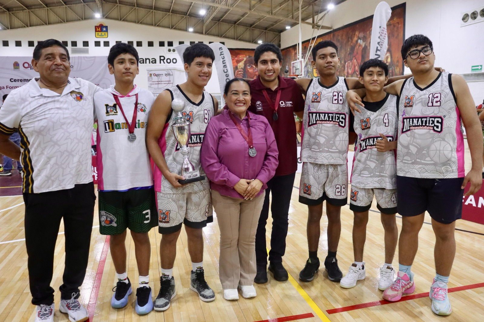 En medio de una colorida ceremonia, ambientada por entusiastas niñas, niños y jóvenes en el renovado Gimnasio “Nohoch Suku’n”, se realizó con éxito la premiación de la Liga Formativa de Básquetbol de la CODEQ, un espacio en el que compiten alrededor de 350 jugadores y que estuvo encabezado por Elda Xix Euán, secretaria de Educación en Quintana Roo y Jacobo Arzate Hop, presidente de la Comisión del Deporte de Quintana Roo (CODEQ).