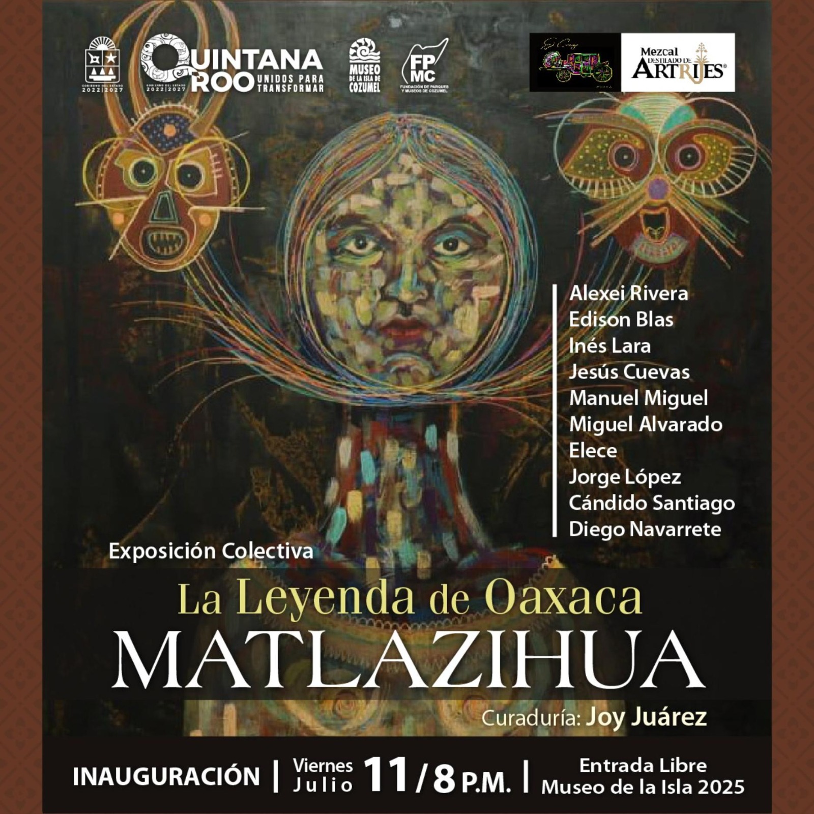 Con el objetivo de fortalecer el intercambio artístico y cultural con otras regiones del país, la Fundación de Parques y Museos de Cozumel (FPMC) invita a la comunidad y visitantes a la inauguración de la exposición colectiva “La Leyenda de Oaxaca: Matlazihua”, que se llevará a cabo el viernes 11 de julio, a las 20:00 horas, en el Museo de la Isla.