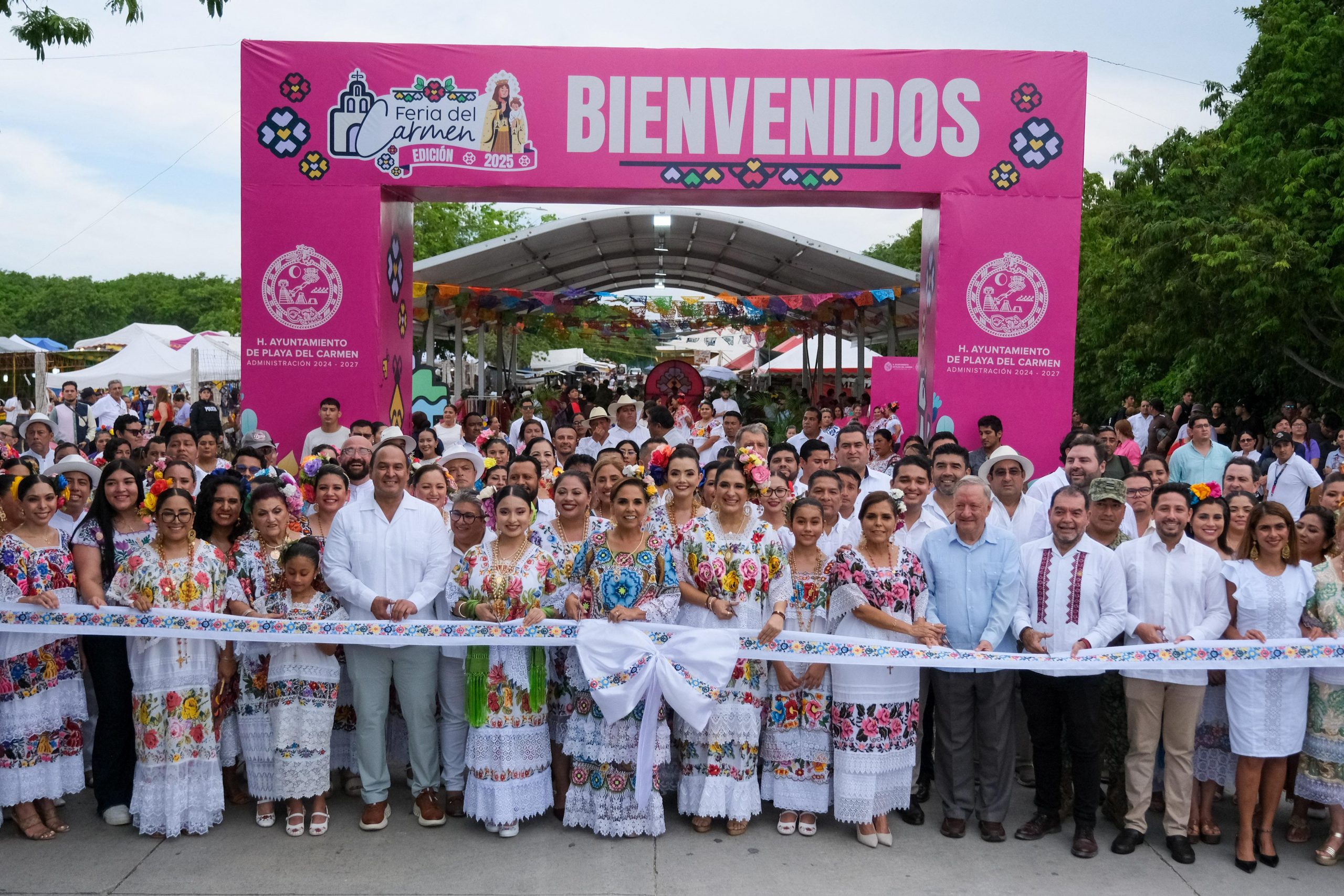 En un ambiente familiar, de fiesta tradicional, vestidas con el traje regional, la gobernadora Mara Lezama Espinosa, la presidenta honoraria del DIF Quintana Roo, Verónica Lezama Espinosa, y la presidenta municipal, Estefanía Mercado, cortaron el listón inaugural de la Feria del Carmen 2025, en su edición 123.