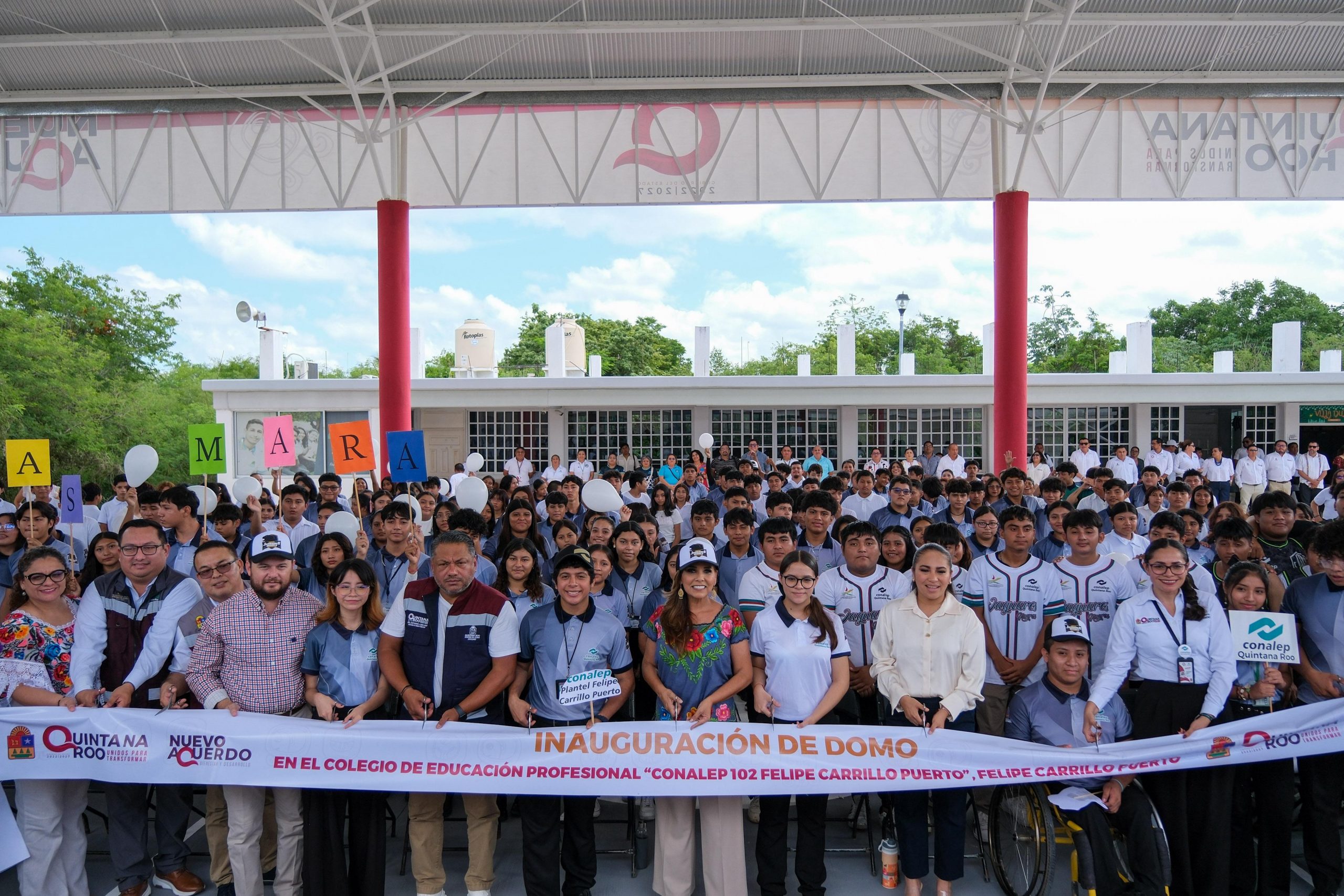 Para el bienestar directo de más de 550 alumnas y alumnos, la gobernadora Mara Lezama Espinosa inauguró el nuevo domo del Plantel Conalep 102 “Felipe Carrillo Puerto”, obra largamente esperada por más de cuatro décadas por la comunidad estudiantil.