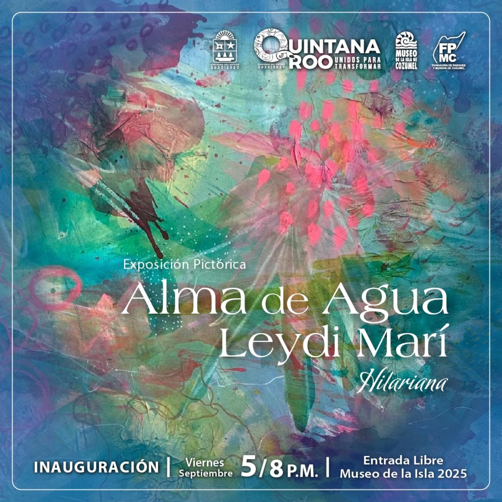 La Fundación de Parques y Museos de Cozumel (FPMC) invita a la comunidad y visitantes a la inauguración de la exposición “Alma de Agua”, de la pintora Leydi Mari, reconocida en el ámbito artístico como “Hilariana”. El evento se realizará el próximo viernes 5 de septiembre, a las 20:00 horas, en el Museo de la Isla. La entrada es gratuita.