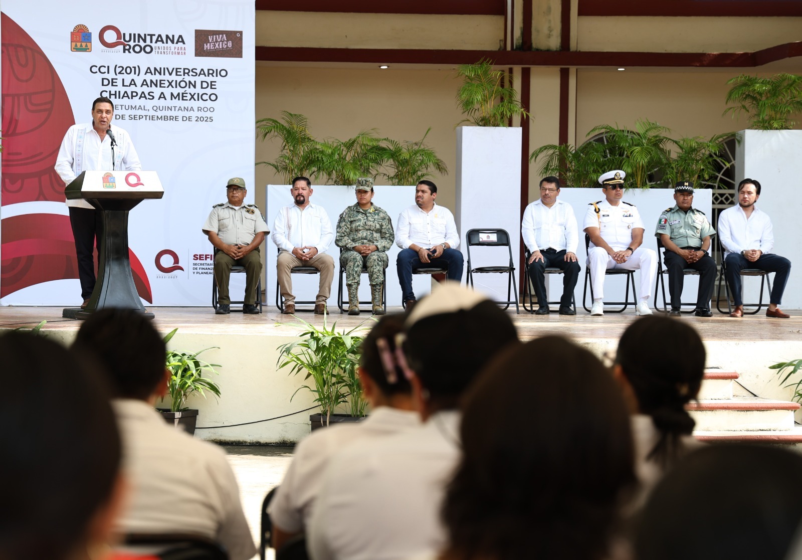 En el marco de las Fiestas Patrias, se conmemoró en Chetumal el 201 aniversario de la anexión de Chiapas a México, acto realizado en el Parque de los Caimanes, ubicado en la avenida Othón P. Blanco.