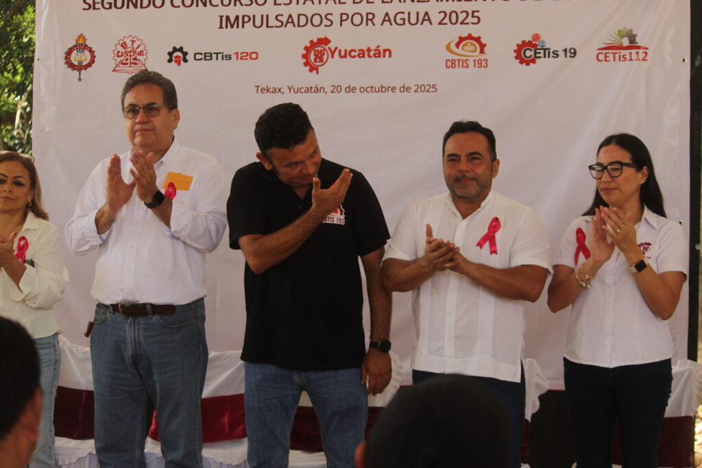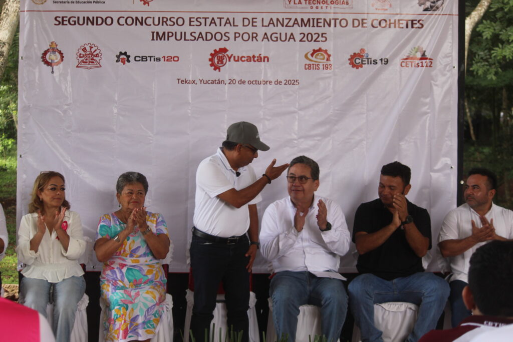 En el evento estudiantil realizado en el Cbtis 193, participaron autoridades de la DGETI, el director del plantel anfitrión René Peraza y el alcalde de Tekax, Manuel Vallejos Sansores, quien permaneció para ver los lanzamientos.