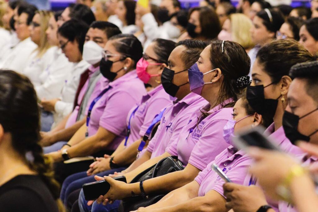 En la entrega del Distintivo Violeta, la Directora General del Tecnológico Campus Sur de Yucatán estuvo acompañada por el Comité Violeta de dicha Casa de Estudios, el cual está conformado por docentes y personal administrativo, quienes vienen trabajando de la mano con la Secretaría de las Mujeres Yucatán (SEMUJERES), ejemplo de ello fue la Feria Violeta que en días pasados se llevó a cabo en las instalaciones del ITSSY, en la cual participaron alumnos, docentes y personal administrativo.
